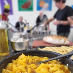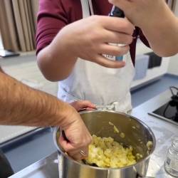 Tijdens het opvolgen van aanwijzingen en koken van de gerechten is er ook tijd voor korte gesprekjes. De leerlingen vertellen over hun kookervaringen, op de groep en op school, maar ook over zichzelf. ‘Dat maakt dit extra leuk. Zij leren van ons en maken kennis met ons vak, en ondertussen leren wij de leerlingen een beetje kennen en leren wij ook weer van hen,’ vertelt Sascha.